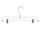 This plastic hangers is made from durable heavy-duty clear plastic, specially designed to protect and display underclothes. The size of this plastic hangers is 11 inches. It is lightweight but good enough to hang the underclothes, and the clips on the hangers can prevent the underclothes from falling down. We are professional manufacturer of hangers, can provide you OEM service. Colors can be customized as your request. Your logo can be put on the hanger to promote your brands. We also produce hangers for dress, pants, skirts, etc. All of our plastic hangers are strictly tested to ensure the quality. They are very hot sale in the market.