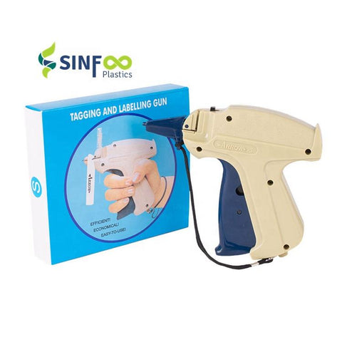 - Existem dois tipos de armas de marcação, que devem ser distinguidas. A pistola de etiqueta grossa é adequada para roupas pesadas, a pistola de etiqueta fina para roupas finas ou algumas roupas de alta qualidade. A agulha da pistola de etiqueta áspera é grossa, o orifício da agulha é grande e deve ser usada com a agulha de cola de formato áspero. A agulha da pistola de etiqueta fina é fina, o orifício da agulha é pequeno e deve ser usada com a agulha de cola de formato fino.